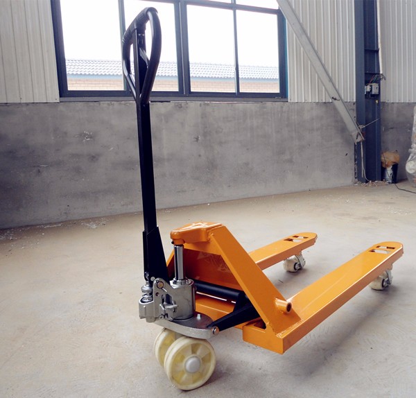 2、手動搬運車貨叉為國標一體鍛造鋼叉;